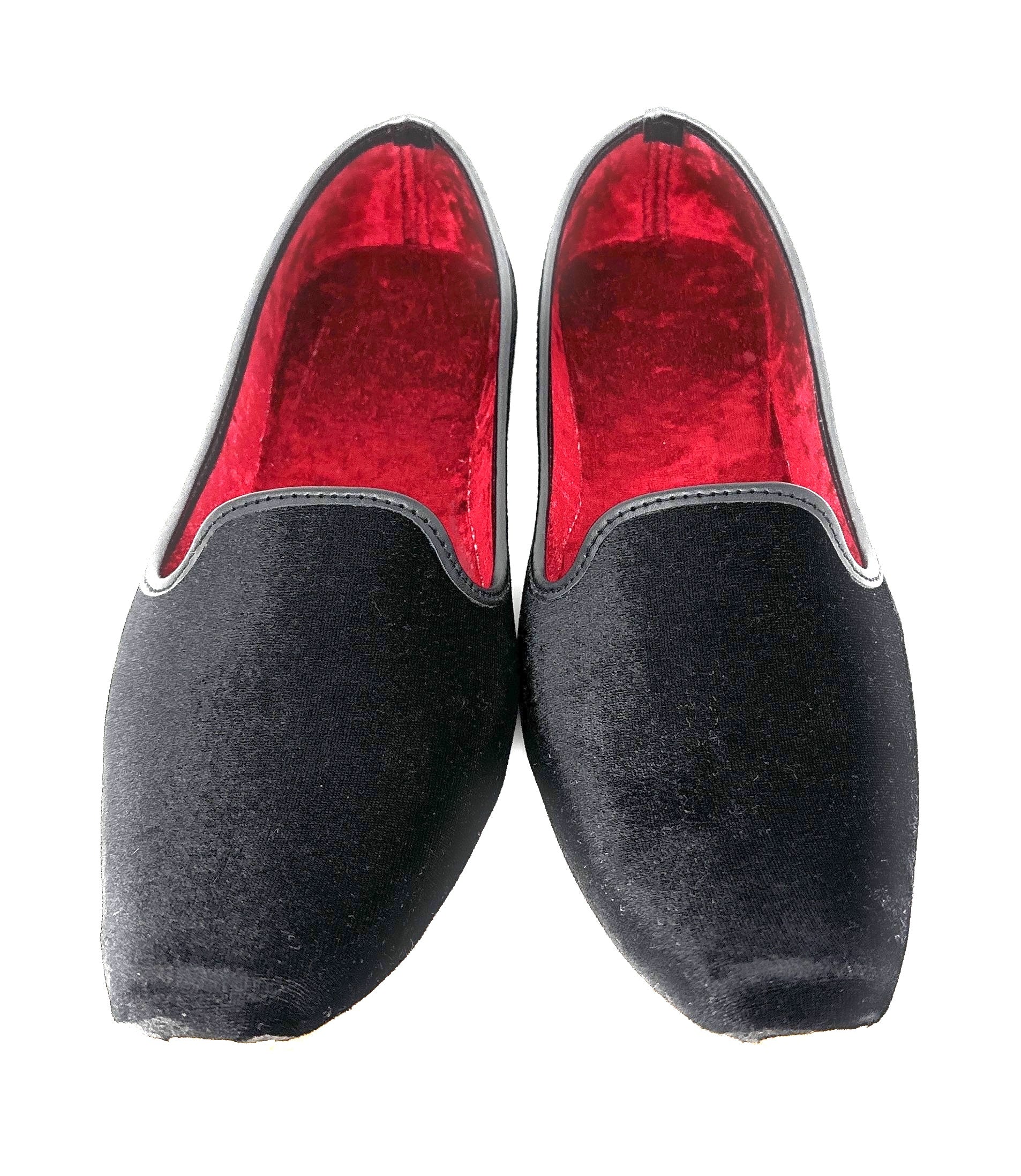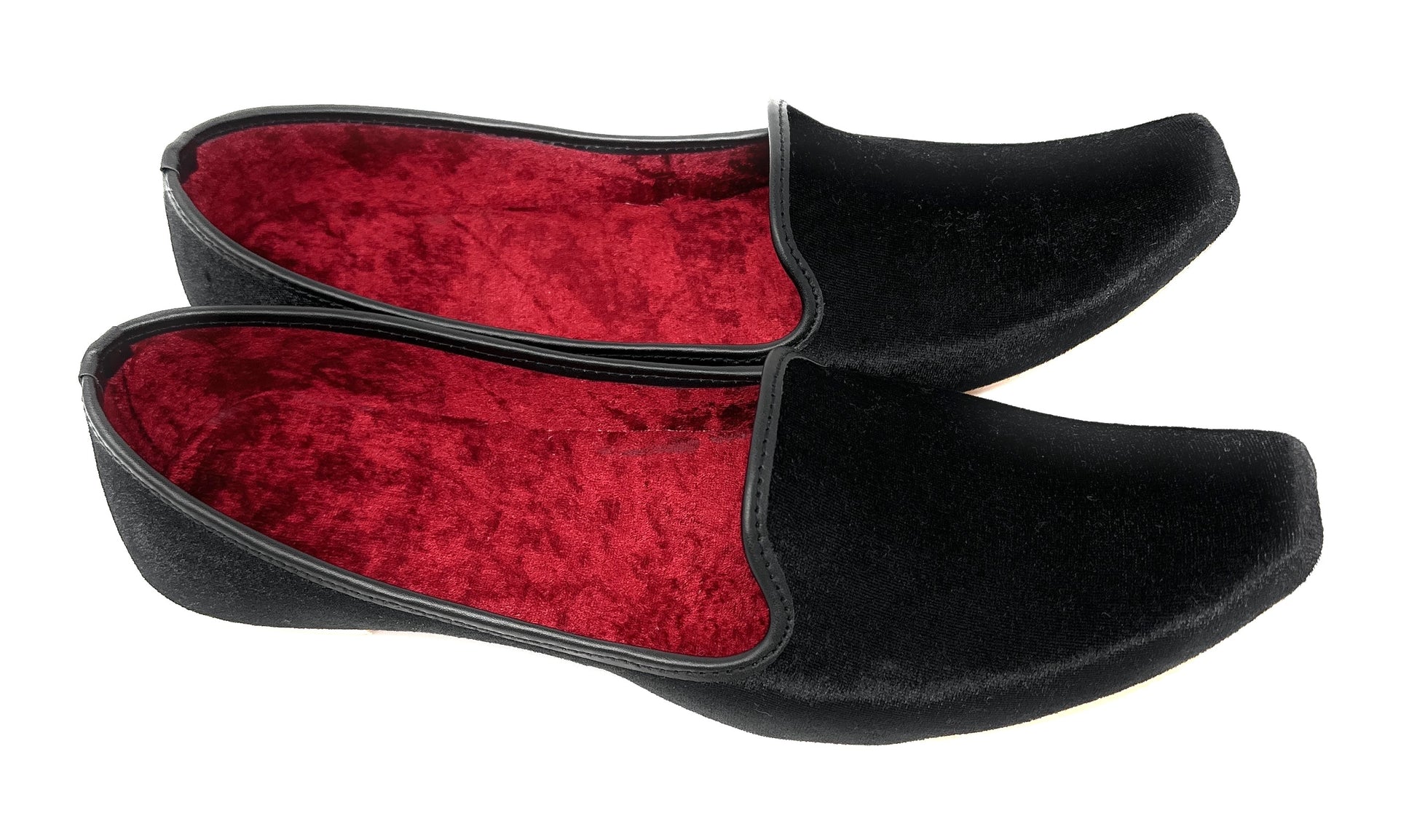 ROYAL FINISH: Accent your outfit with your black punjabi jutti! This shoe is meticulously designed with a sparkling black finish and a tempting red faux velvet. These Punjabi jutti for men have a polished finish and silky-soft texture to feel smooth on your feet and gives a luxurious vibe. The flat-soled wedding dress shoes for men have rich embellishments that provide an ethnic appeal to your sherwani shoes.